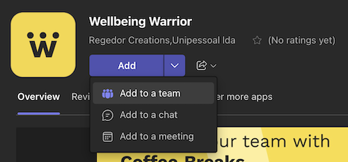 - you can find the app in the Apps tab in Teams by searching for "Wellbeing Warrior", or just clicking here